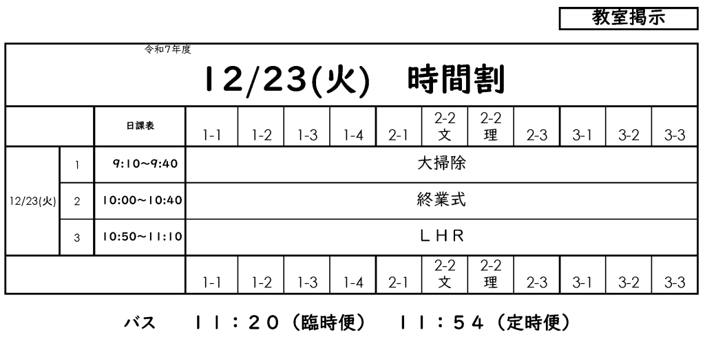 です。課題考査時間割を確認!